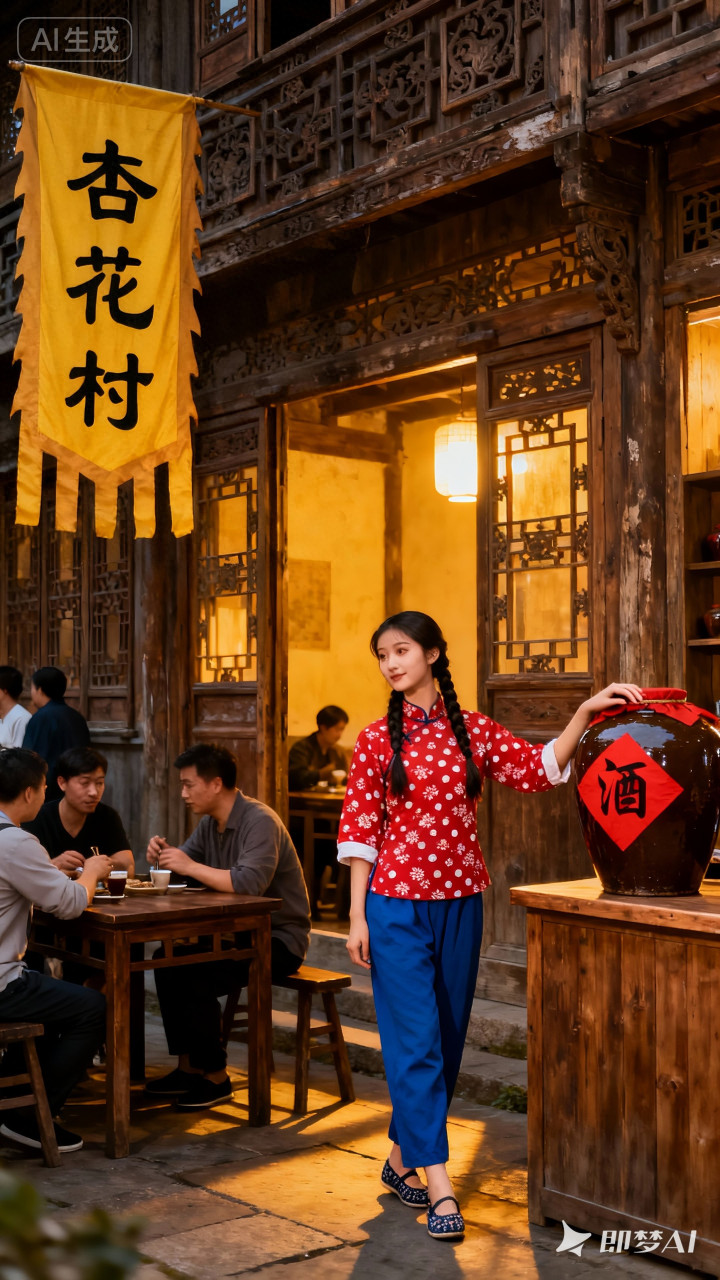 暮色漫过雕花窗棂时,阿杏正倚着酒坛数屋檐下的灯笼。