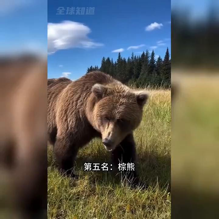 ·第五名:棕熊。棕熊的体重能达到一吨,站起来有2.5米高,跑起来时速达到50公里。棕熊的掌力能达到两吨,和大猩猩的拳头差未几,然则棕熊吃肉缺点性更强。